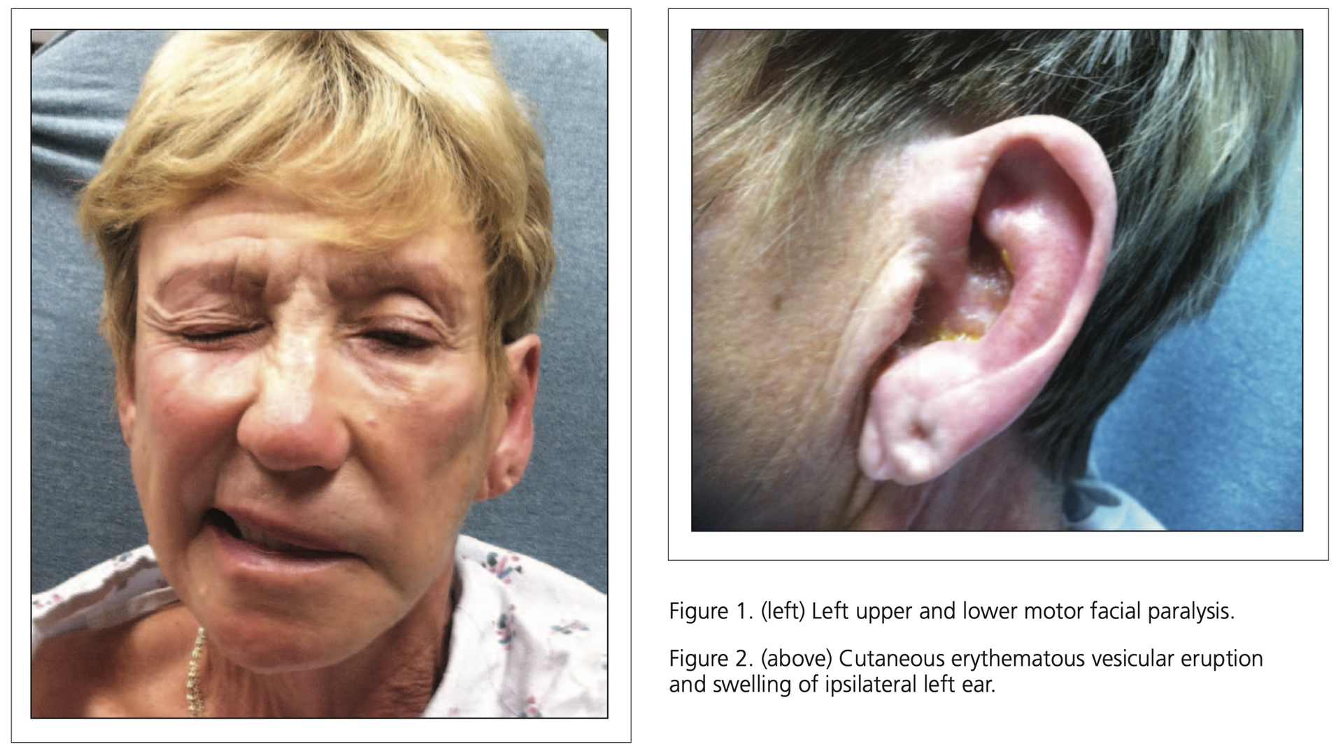 Ramsay Hunt症候群は耳道、耳介の水疱と顔面神経麻痺、難聴、めまい、耳鳴、眼振など多彩な症状を来します。顔面神経だけでなく内耳神経(前庭神経、蝸牛神経)にも影響を及ぼすということですね。他の脳神経症状を合併することもあるそうですよ。
