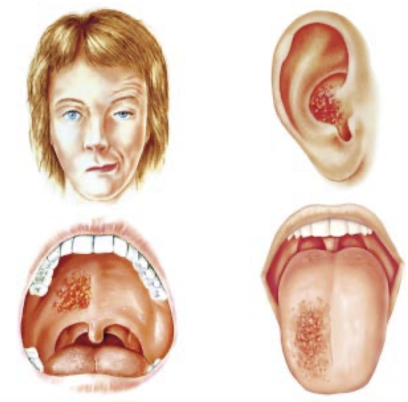 つまりRamsay Hunt症候群で皮疹が出ているのは顔面神経支配の部分ですね。他には以下のような場所にも皮疹は出えます。